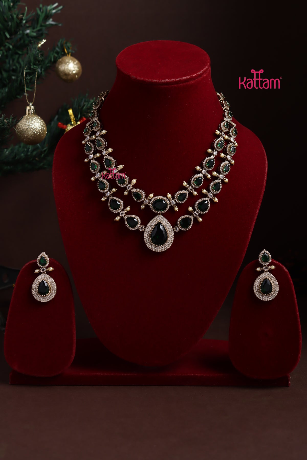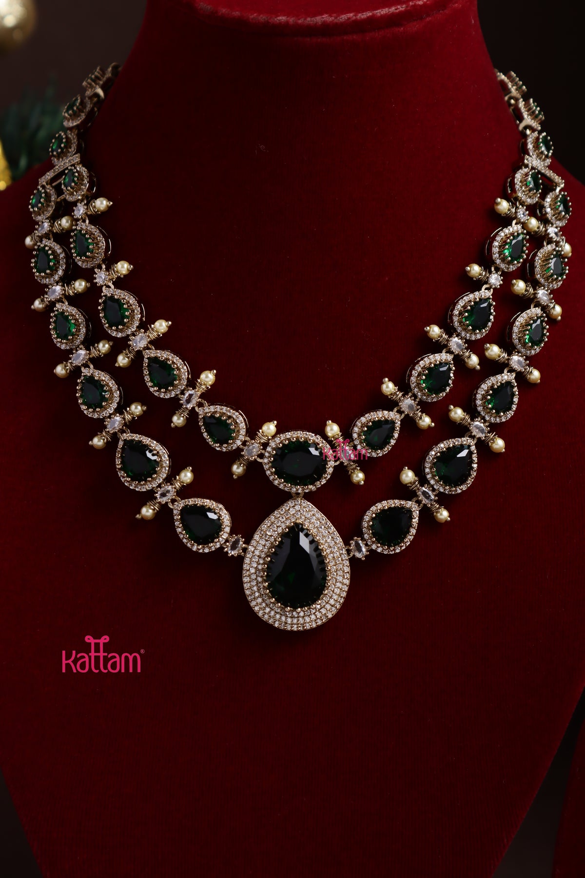 Liya - AD Green Layered Stone Necklace - N5374