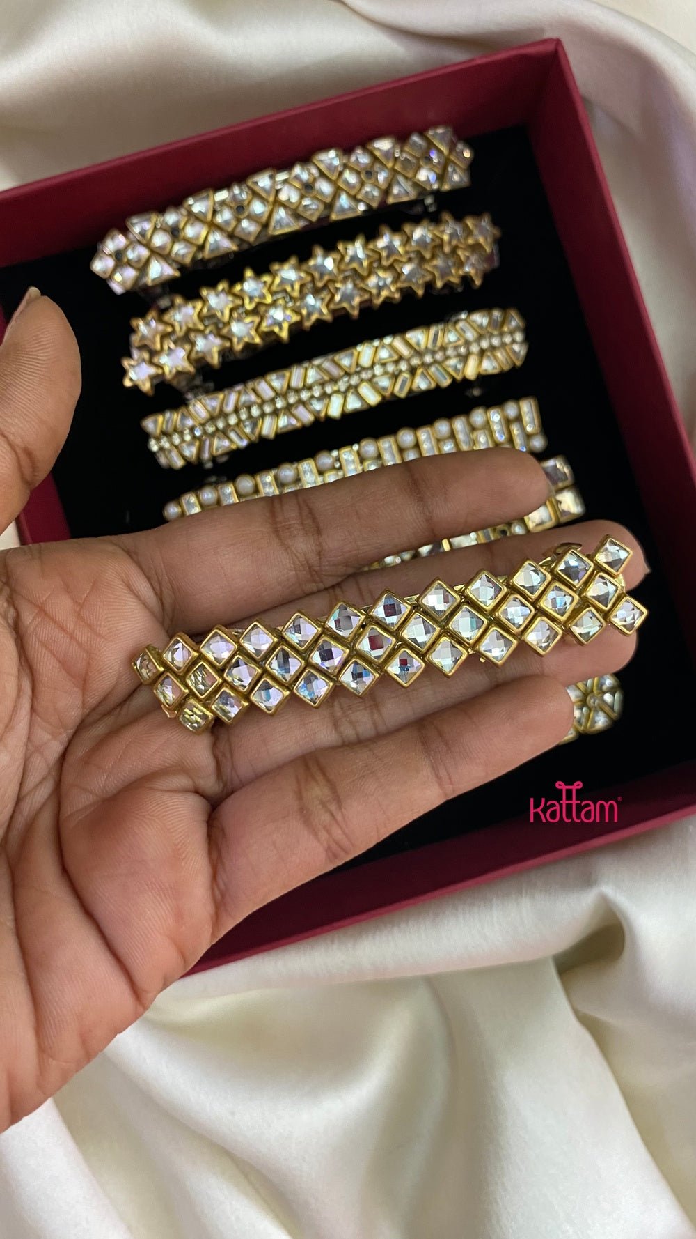Material Finish : Kundan Hair Clip – are made of kundan stones and metal alloy.